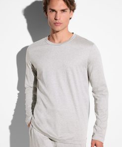 Zimmerli Men’s Loungewear Sea Island Limited | T-shirt Long Sleeve – Grey Mélange | Grey Mélange