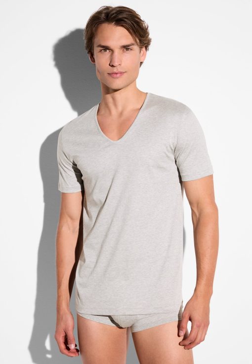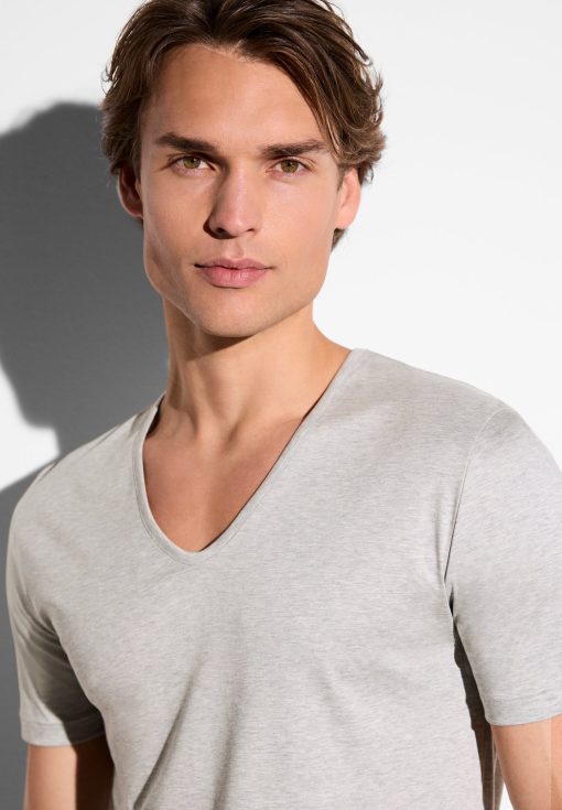 Zimmerli Men’s Loungewear Sea Island Limited | T-shirt Short Sleeve V-neck – Grey Mélange | Grey Mélange