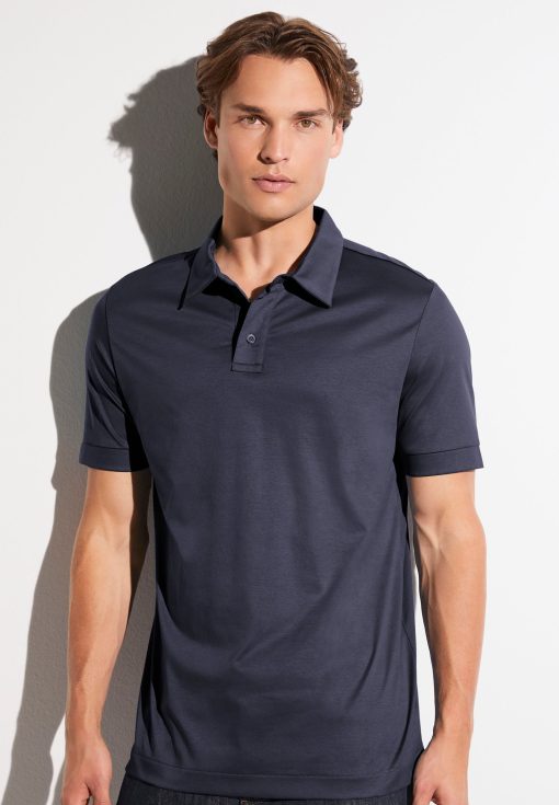 Zimmerli Men’s Loungewear Sea Island | Polo Shirt Short Sleeve – Navy | Navy