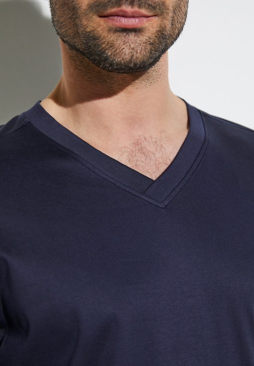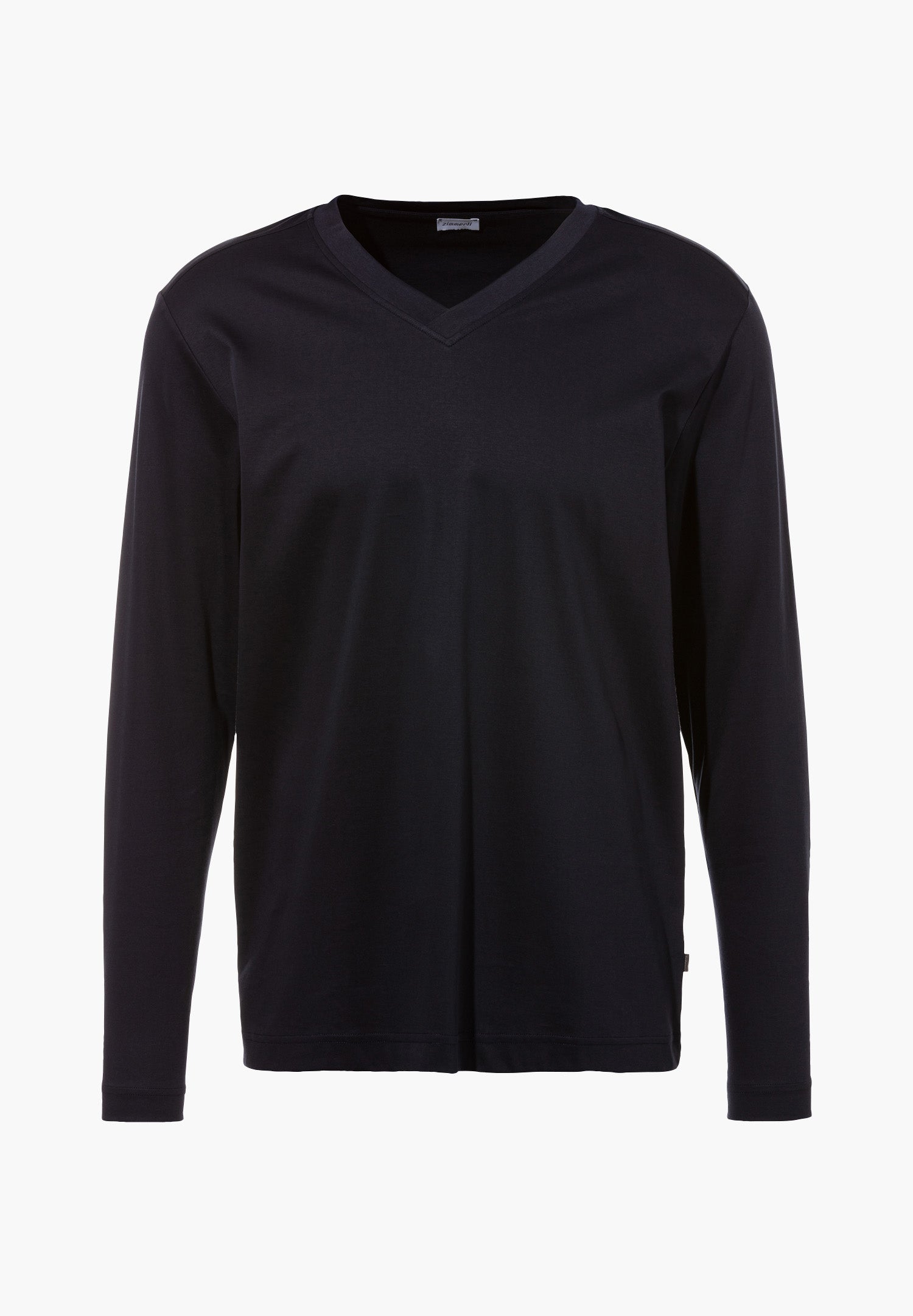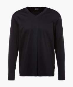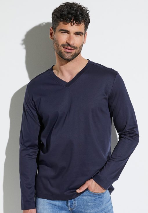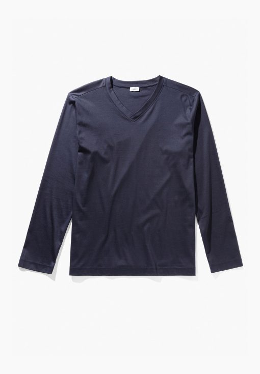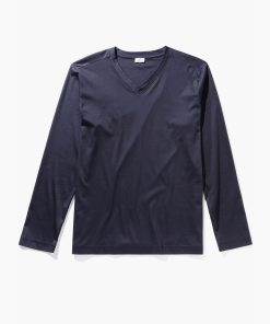 Zimmerli Men’s Loungewear Supreme Green Cotton | T-shirt Long Sleeve V-neck – Navy | Navy