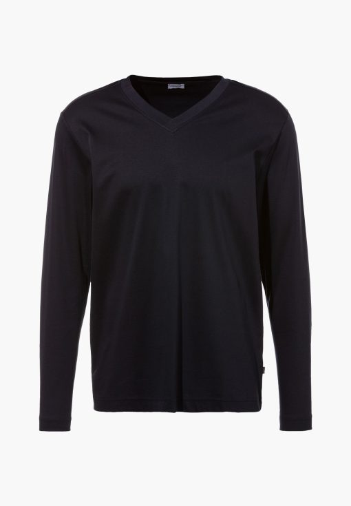 Simplicity meets complete transparency – we pride ourselves in giving full visibility of the manufacturing process of our cotton, from the crop to the finalised yarn. This men’s long-sleeved shirt features a V-neck and forward shoulder seams for a modern look. There is an inset band at the neckline that crosses over in the centre of the V-neck. It provides a very cosy and relaxed wearing sensation.
