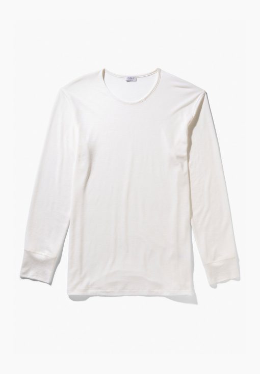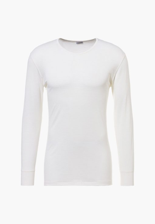 Two precious materials complement each other ideally in this long-sleeve shirt. Cool silk fibres and warming merino wool create an airy and elastic fabric with a slightly irregular structure. Whether as underwear or tops, Wool & Silk provides an aesthetic sense of well being for the cold days.