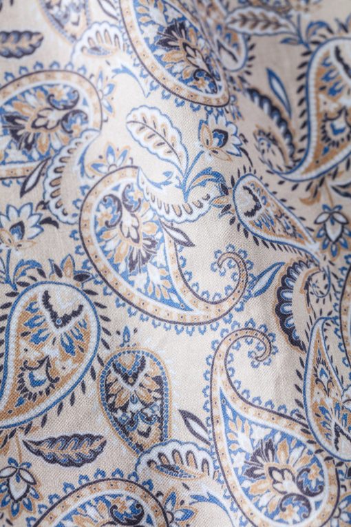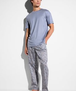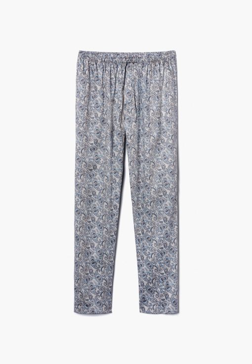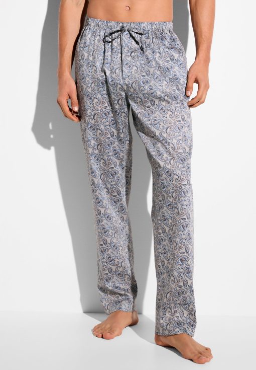 In the Cotton Sateen Print line, silky-soft cotton is woven into a pleasantly smooth fabric and printed with a contrasting paisley design. The long sleep trousers for men are designed with a concealed, elasticated waistband. The long trousers also have a concealed fly that can be opened/closed with a button. The cut is loose and comfortable, while the woven fabric is firm and non-elastic.