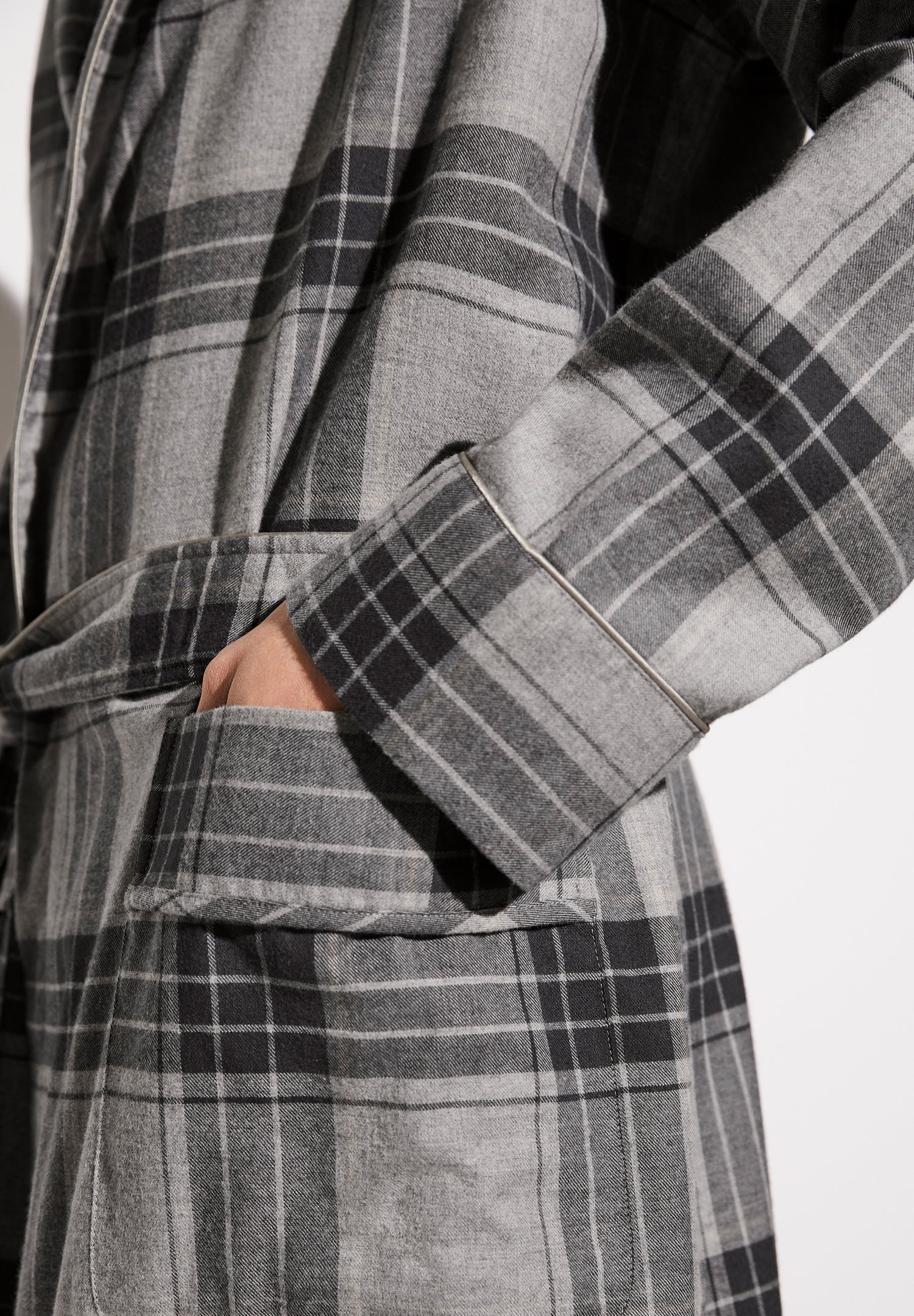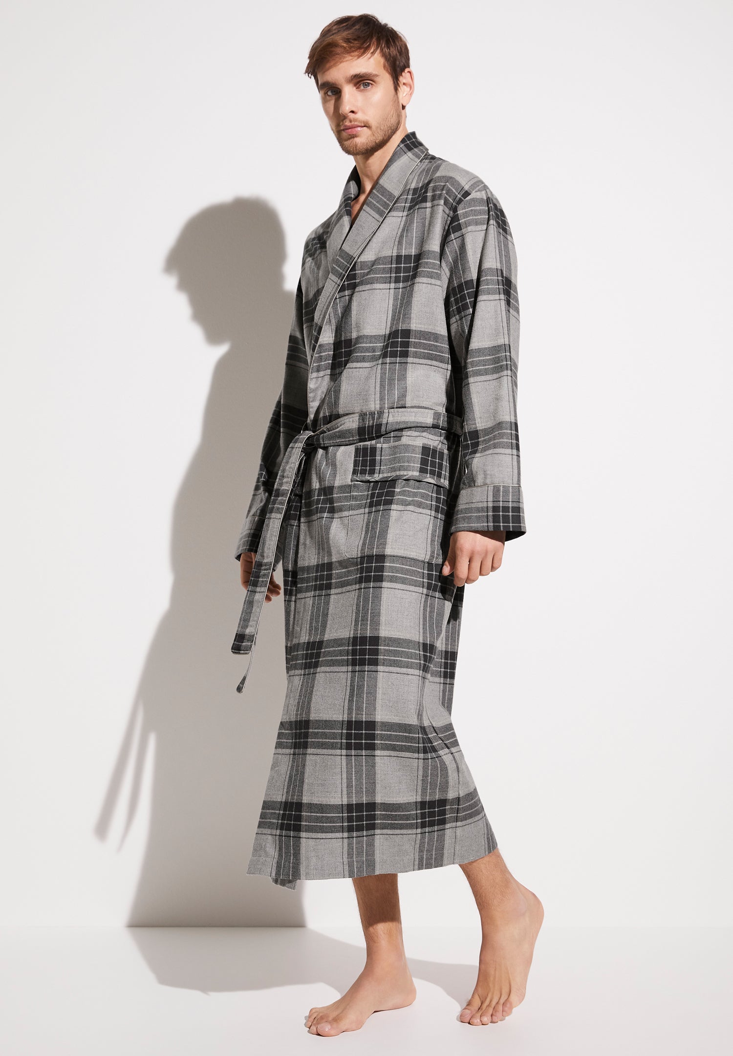Cosy and soft, warm and the perfect companion for the night. The long men’s robe from the Cozy Flannel range is made from particularly soft cotton fabric with a touch of wool. The flannel fabric is wonderfully warm, lightweight and absorbs moisture particularly well.