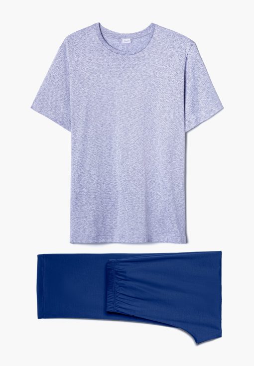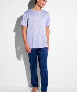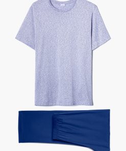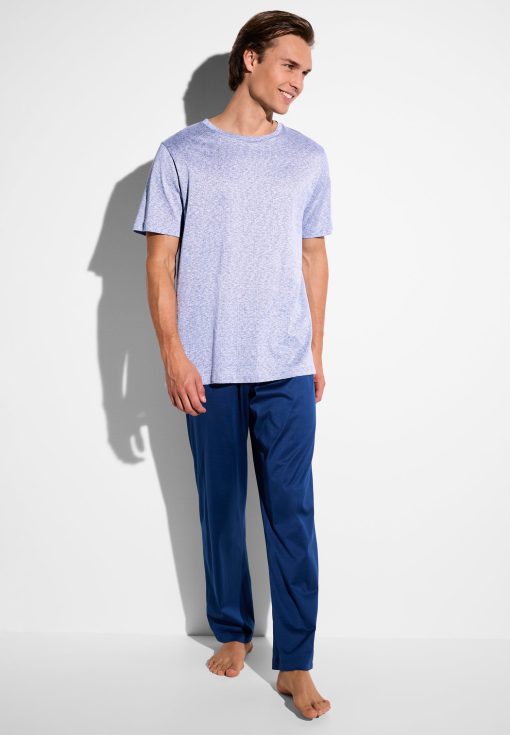 Take your sleep to a new level. The Filodiscozia men’s pyjamas from Zimmerli of Switzerland with their fine, double mercerised cotton ensure an incomparably pleasant feeling on the skin and a balanced sleeping climate. The exclusive Filoscozia quality is particularly breathable, temperature-regulating and moisture-wicking – ideal conditions for relaxed, regenerating sleep. With timeless sophistication and fine details such as double needle stitching on the hem and sleeves, a concealed elasticated waistband and a comfortable cut, this pyjama set with short sleeves and long trousers combines relaxed elegance with uncompromising quality. Lovingly handcrafted, they epitomise the finest private luxury from Zimmerli of Switzerland – for all those who want to feel only the best against their skin at night.