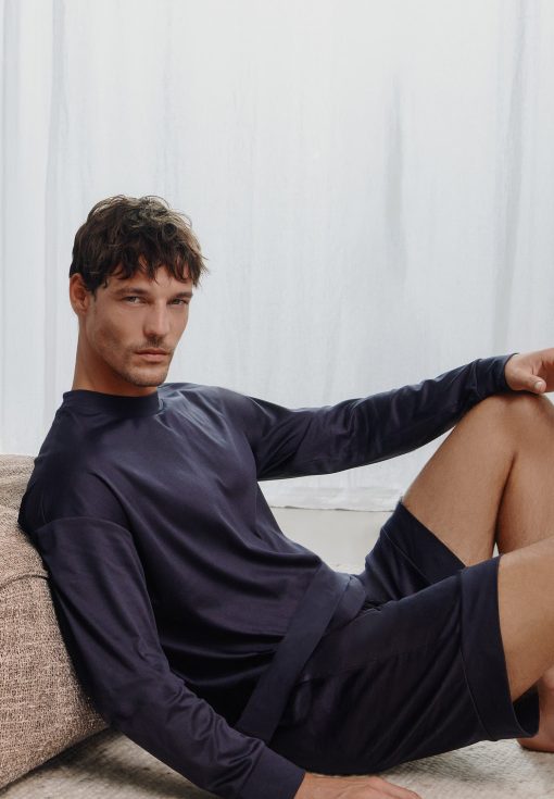 Caribbean feeling for the skin. The most exclusive cotton in the world is hand-picked for Zimmerli of Switzerland in Barbados and knitted in Ermatingen on Lake Constance. Sea Island styles impress with their silky lustre and ultra-soft feel – and are also durable and easy to care for. Those who love quiet luxury will be delighted by the finest loungewear in the world and the timeless ready-to-wear styles. Get the T-shirt with long sleeves for men, designed with dropped shoulders and hem and sleeve cuffs.