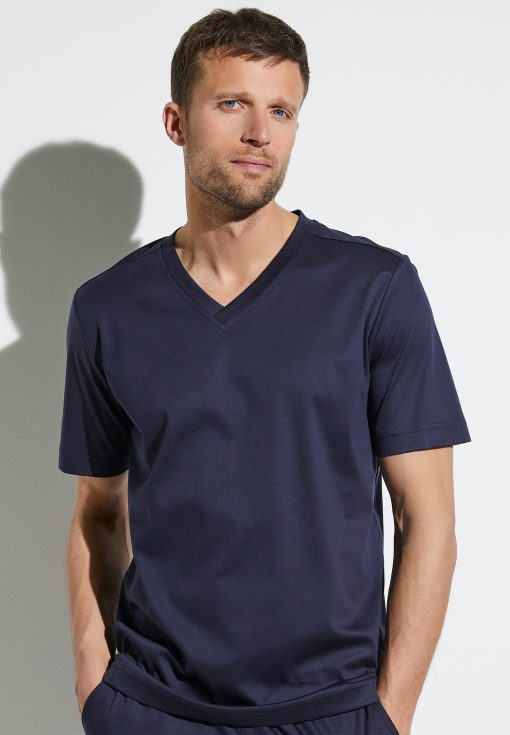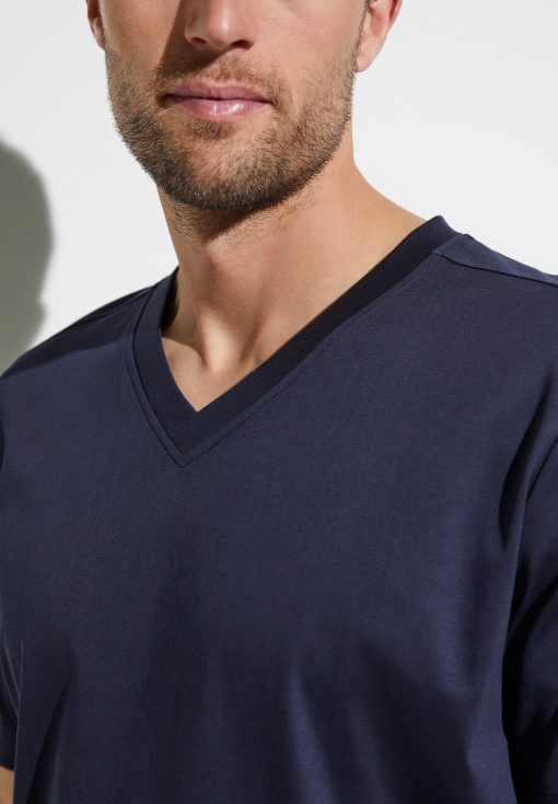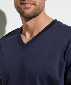 Simplicity meets complete transparency – we pride ourselves in giving full visibility of the manufacturing process of our cotton, from the crop to the finalised yarn.This men’s t-shirt features a V-neck and forward shoulder seams for a modern look. There is an inset band at the neckline that crosses over in the centre of the V-neck. It provides a very cosy and relaxed wearing sensation.