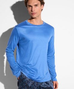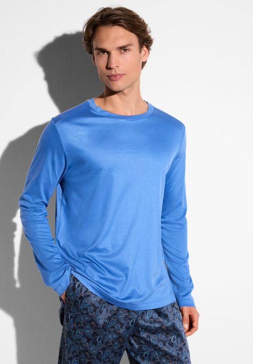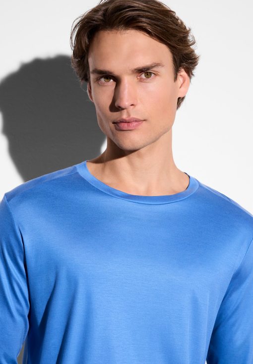 A particularly smooth, flowing fabric with a soft shimmer that feels cool against the skin. This seasonal long-sleeve T-shirt from the Sustainable Luxury line is made exclusively from sustainable lyocell and gives you a uniquely luxurious feeling of well-being. The eucalyptus-derived Material is breathable and regulates the climate at night.
