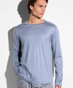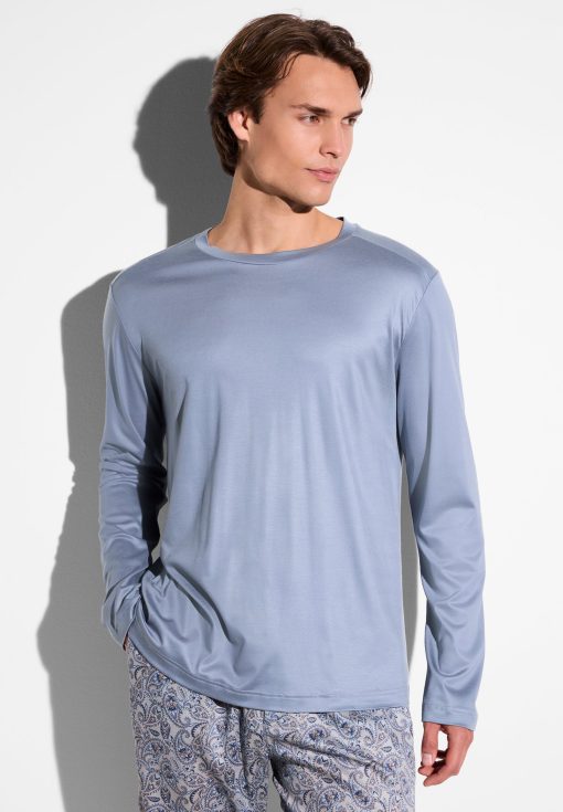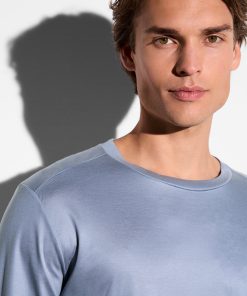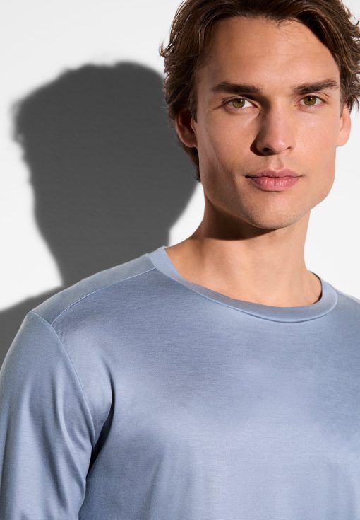 A particularly smooth, flowing fabric with a soft shimmer that feels cool against the skin. This seasonal long-sleeve T-shirt from the Sustainable Luxury line is made exclusively from sustainable lyocell and gives you a uniquely luxurious feeling of well-being. The eucalyptus-derived Material is breathable and regulates the climate at night.