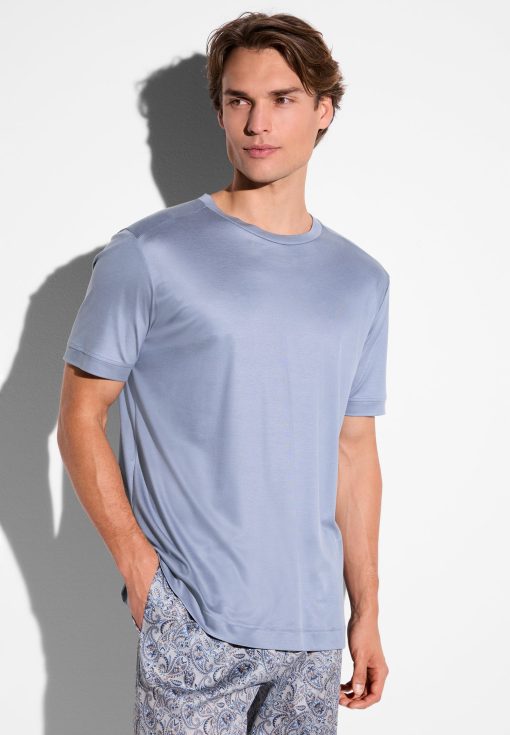 Zimmerli Men’s Nightwear Sustainable Luxury | T-shirt Short Sleeve – Rock Blue | Rock Blue