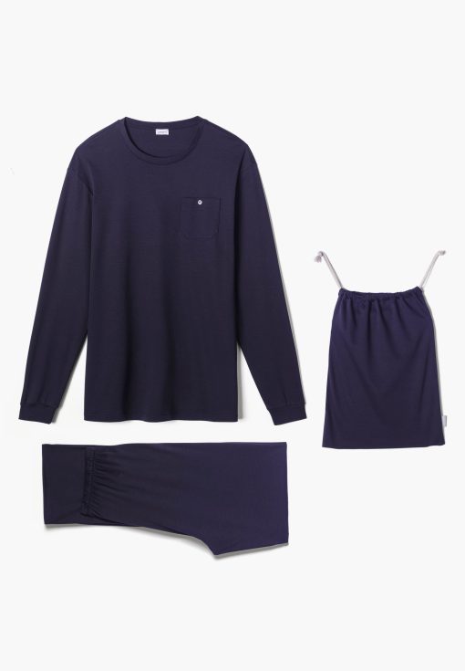 The cut and size of the Swiss Traveller set are based on the Swiss First Class Traveller pyjamas and offer a relaxed fit that tends to run large. The unisex design is suitable for both men and women. If in doubt, we recommend that men choose one size smaller and women two to three sizes smaller.