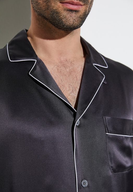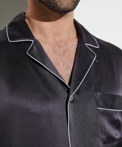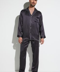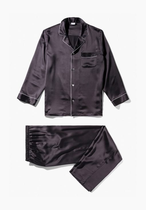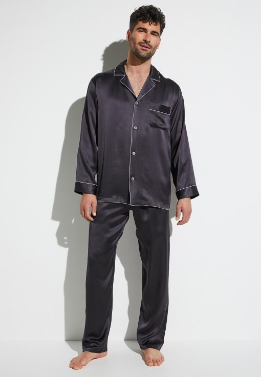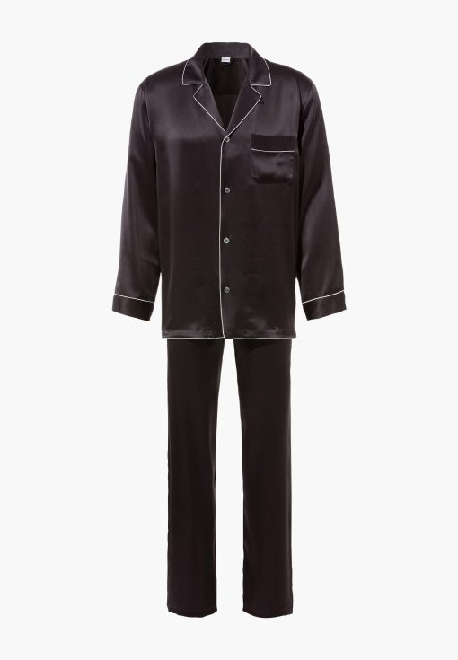 Spoil yourself with pure luxury and enjoy the feel of 100 % genuine silk. These pyjamas from the Silk Nightwear collection offer wonderful moments of relaxation and guaranteed elegance. The easy-care fabric helps regulate the temperature and is resistant to creasing. It has an exquisite sheen that underscores the relaxed fit. Colour-contrasting details emphasise the stitching around the borders, collar and side pockets while white pearl buttons add the perfect finishing touch to these exclusive pyjamas. This is a genuine luxury garment for gentlemen of the world, suitable for wearing at any time of the year.