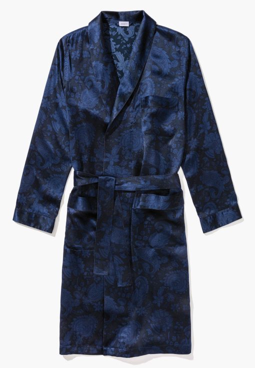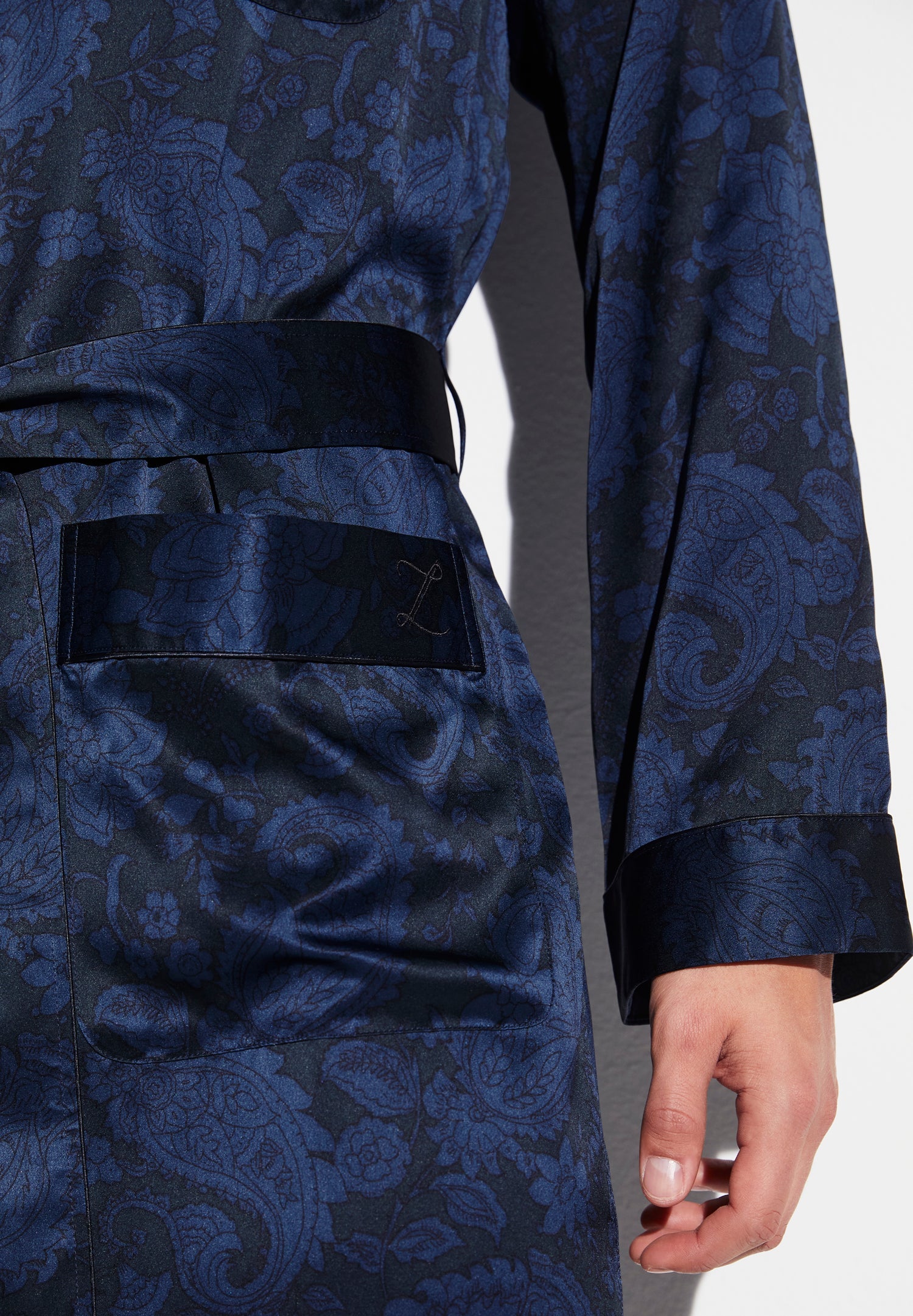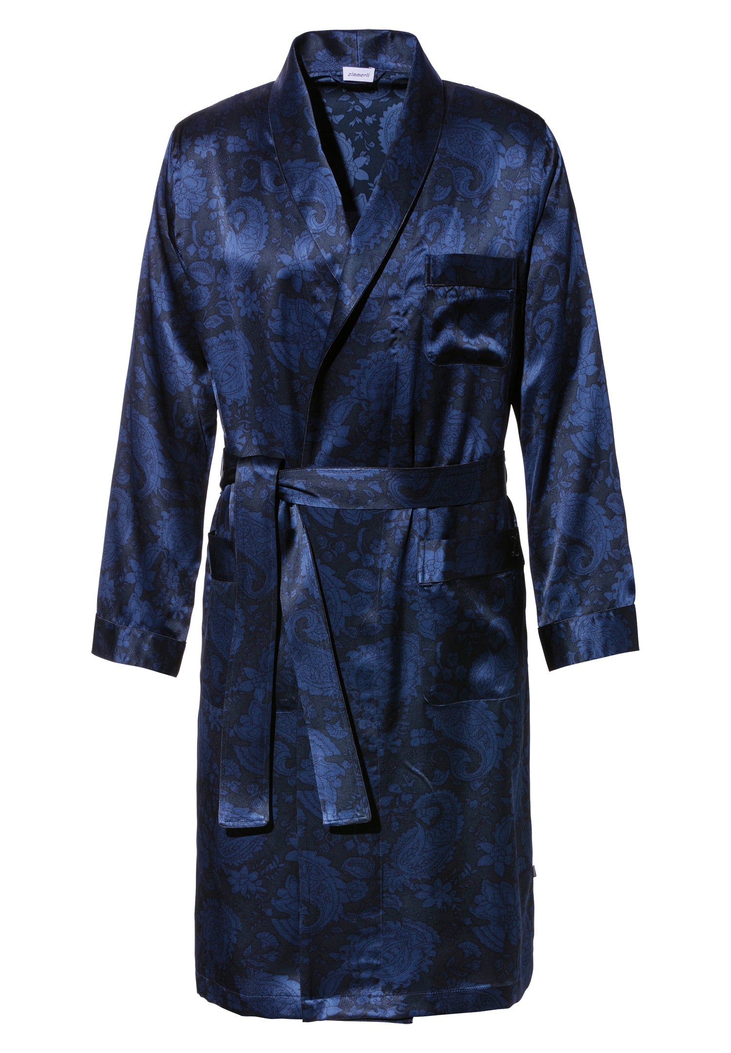A dressing gown made of pure silk, which will enhance your evenings and the start to the day with private moments of total relaxation. For this dressing gown, a high-quality silk with 19 momme (approx. 80g/m²) is used. This silk is pleasantly heavy and smooth. It has a dense weave and is highly resistant to creasing. It is also very skin-friendly and particularly suitable for allergy sufferers. The colours in this dyed silk have a wonderful brilliance. The dressing gown comes in a classic style that reaches to the knee. It has a comfortable shawl collar and pockets. Discreet piping around the collar, sleeves and pockets add a touch of elegance. A tie belt allows the dressing gown to be closed in a casual style. The dressing gown has a relaxed drape and offers excellent temperature regulation thanks to the high-quality silk. In cool temperatures it feels comfortably warm; when conditions are warmer it has a pleasantly cool feel. The understated, stylish design ensures exceptional comfort and a sense of well-being.
