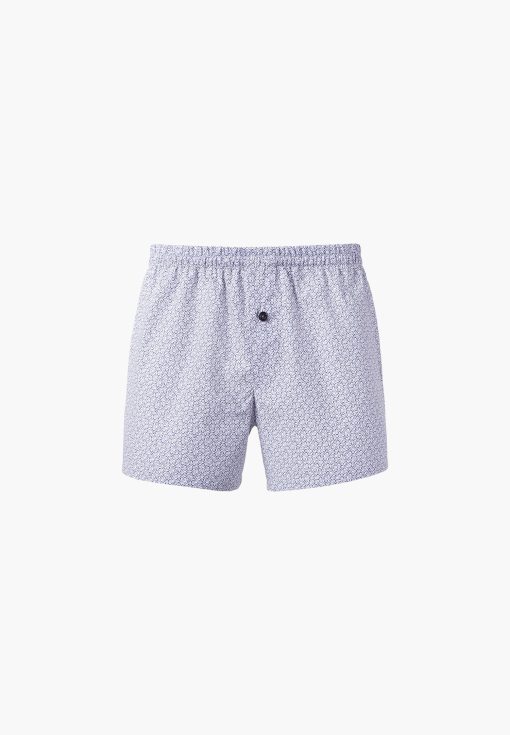 The Cotton Polin line stands for breathability and ease of care, for hard-wearing, versatile and densely woven fabric with a smooth, non-slip surface that is ideal for pyjamas and boxer shorts. Geometric print meets modern cut – a style that will stay with you for a long time. The boxer shorts for men feature an elasticated waistband, a single-button fastening and a cropped leg. The cut is loose and comfortable, the woven fabric is firm and not elasticated. The leg length is slightly shorter than other Zimmerli of Switzerland boxer shorts. The men’s boxer shorts from the Cotton Poplin Print line are made of pure cotton. The woven fabric is only slightly elasticated, but offers a very smooth and even surface. The geometric print is classic and timeless.