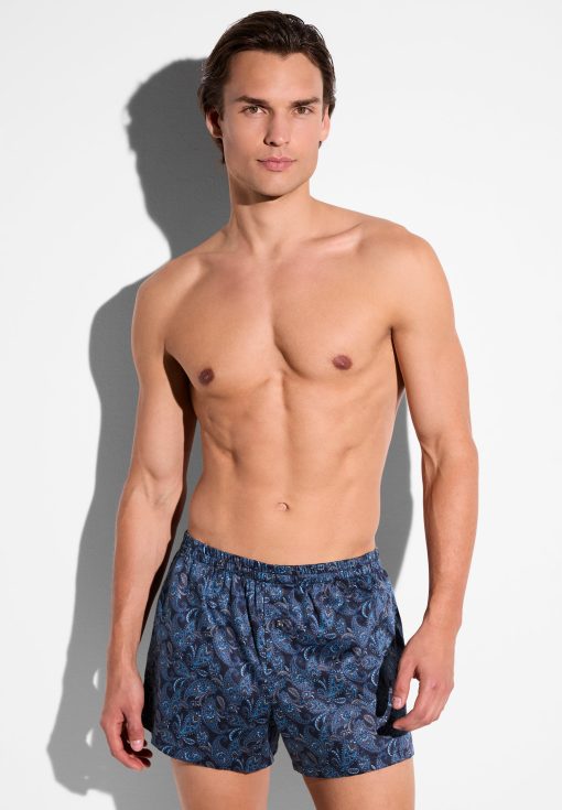 Zimmerli Men’s Underwear Cotton Sateen Print | Boxer Shorts – Paisley Midnight | Paisley Midnight