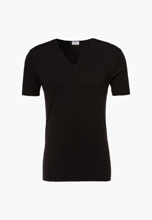 Thanks to its perfect fit and the ultrafine jersey fabric, this short-sleeved V-neck shirt offers pure comfort for everyday wear. The exquisite Pima cotton ensures an elegant sheen and is beautifully soft, while the small elastane component guarantees perfect flexibility so the fabric is gently figure-hugging. Perfectly finished seams and an elegant V-neck round off this versatile top, making it ideal for wearing under or over another garment. In addition to classic white and black, this short-sleeved shirt is available in a dark blue colour and can be paired perfectly with the matching briefs from the PURE COMFORT collection.