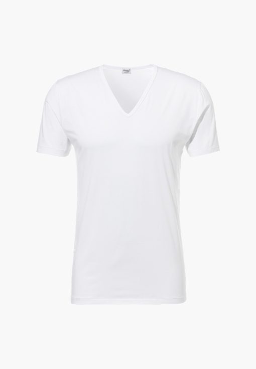 Thanks to its perfect fit and the ultrafine jersey fabric, this short-sleeved V-neck shirt offers pure comfort for everyday wear. The exquisite Pima cotton ensures an elegant sheen and is beautifully soft, while the small elastane component guarantees perfect flexibility so the fabric is gently figure-hugging. Perfectly finished seams and an elegant V-neck round off this versatile top, making it ideal for wearing under or over another garment. In addition to classic white and black, this short-sleeved shirt is available in a dark blue colour and can be paired perfectly with the matching briefs from the PURE COMFORT collection.