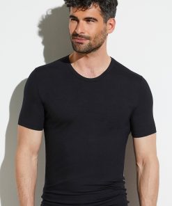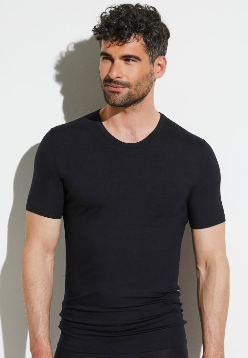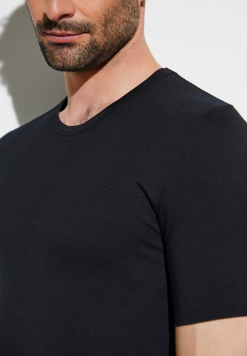 The pureness collection is packed with nature and breathability. The beechwood cellulose is processed into Micromodal which tenderly hugs the body. The form-fitting shirt with a high round neckline cuts a fine figure even as a top.
