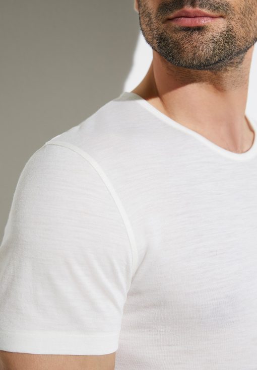 Two precious materials complement each other ideally in this shirt. Cool silk fibres and warming merino wool create an airy and elastic fabric with a slightly irregular structure. Whether as underwear or tops, Wool & Silk provides an aesthetic sense of well being for the cold days.