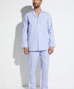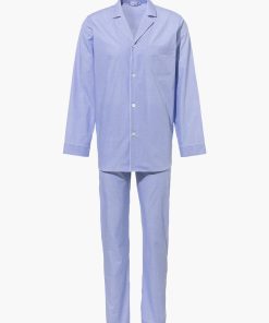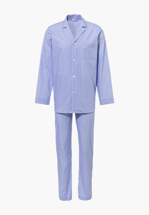 The good feeling of wrapping oneself in fresh, cool bed linen does not have to stop with the blanket and sheets. The pyjamas made of woven cotton with satin voile transfer private luxury directly to the skin. A classic cut, comfortable fit and stylish details to help end the day in style.