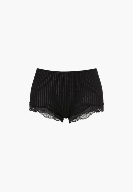Small masterpieces are hidden in the airy ajouré ribs. Intricate patterns run through the pure cotton of these hipsters with a low-cut leg, which are topped with delicate lace from Calais. So much luxury is only possible with passionate Swiss craftsmanship.
