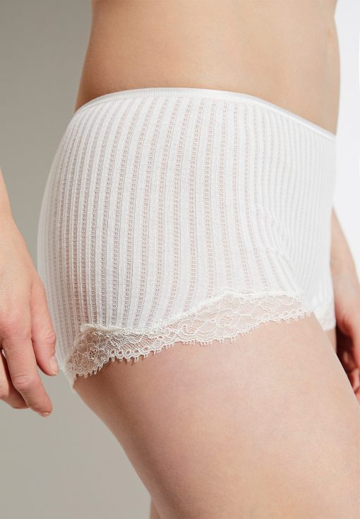 Small masterpieces are hidden in the airy ajouré ribs. Intricate patterns run through the pure cotton of these hipsters with a low-cut leg, which are topped with delicate lace from Calais. So much luxury is only possible with passionate Swiss craftsmanship.
