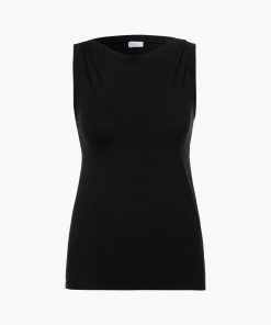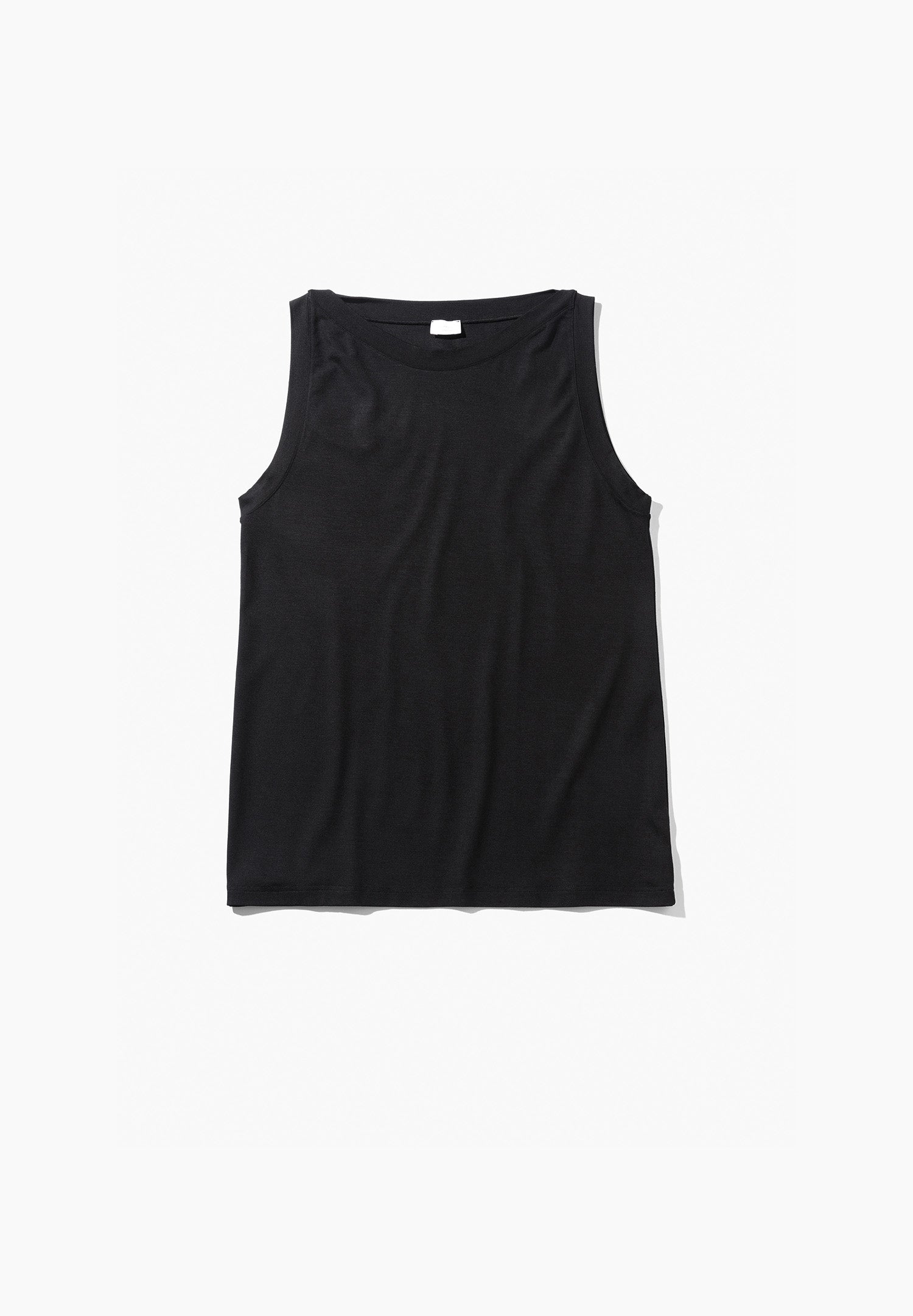 Exceptionally soft and temperature-regulating. The top with wide straps for women impresses with a bateau neck. The broad fabric bands that create this style meet at the shoulders and cross – a small detail that makes for a large neckline. These broad bands can also be found at the armhole openings. The top has a figure-hugging and comfortably tight fit.