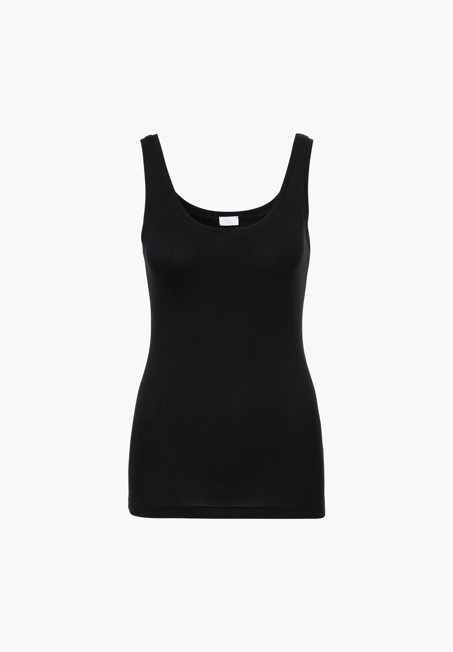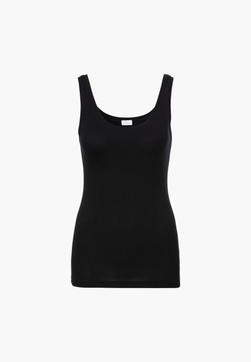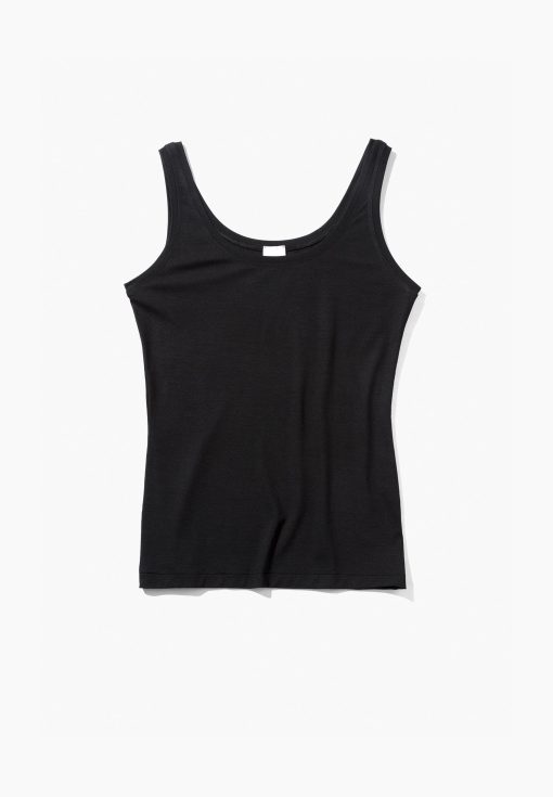 Exceptionally soft and temperature-regulating. The cami top for women features a circular neck. The neckline and the armhole openings are bordered with a delicate band. The seam at the hem is practically invisible. It has a figure-hugging and comfortably tight fit.
