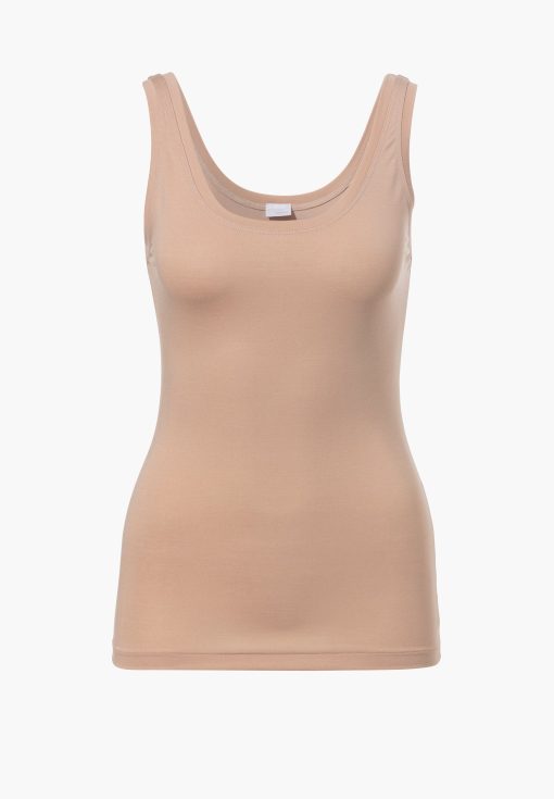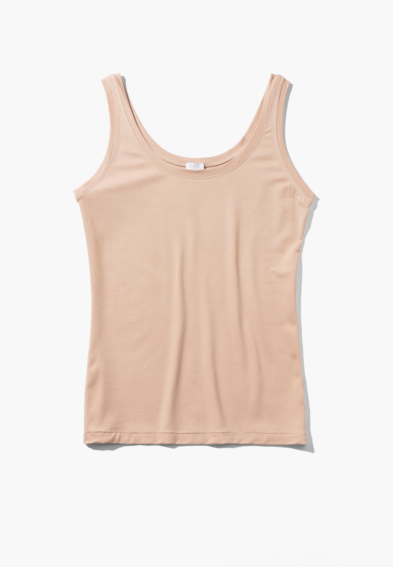 Exceptionally soft and temperature-regulating. The cami top for women features a circular neck. The neckline and the armhole openings are bordered with a delicate band. The seam at the hem is practically invisible. It has a figure-hugging and comfortably tight fit.
