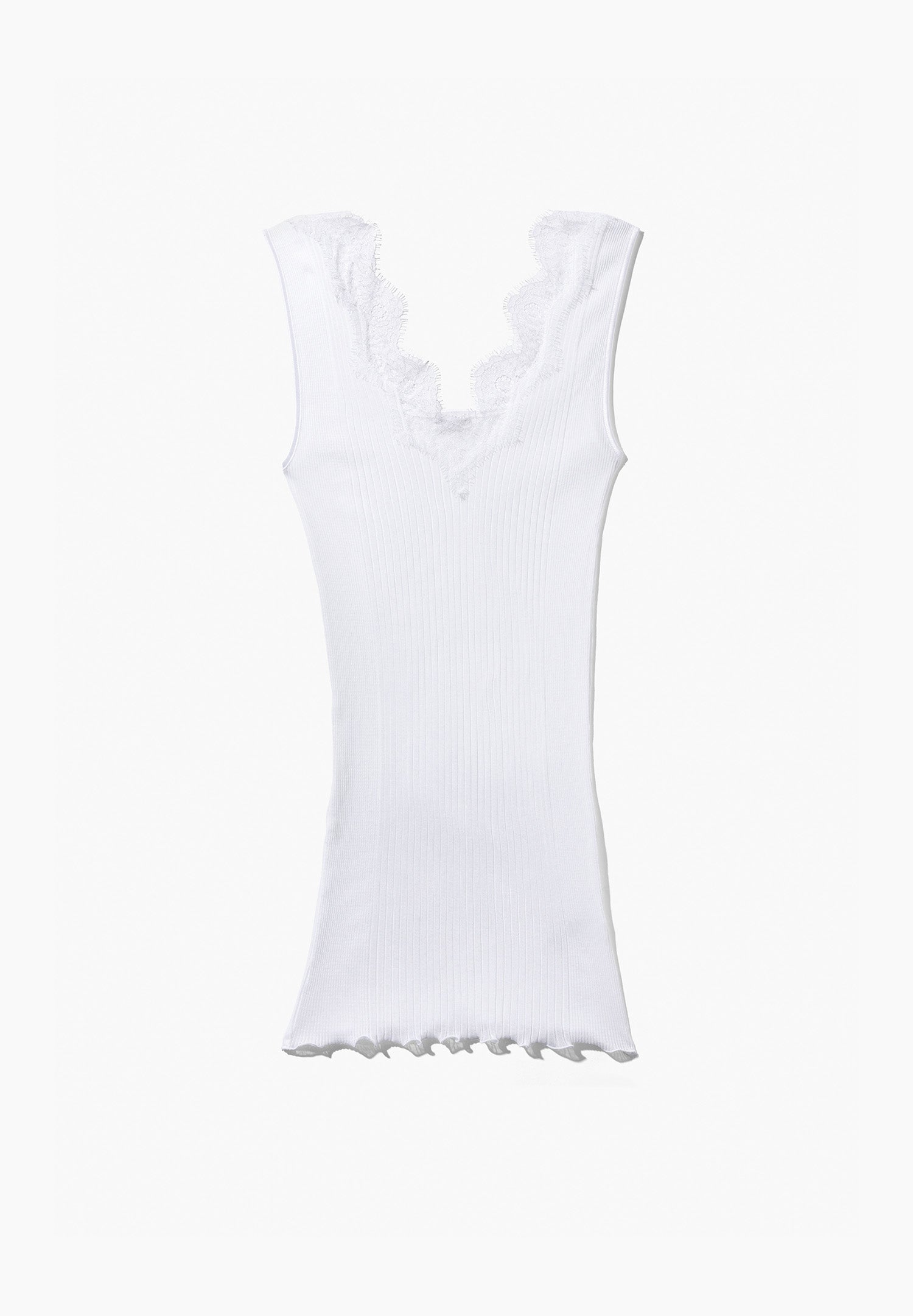 This spaghetti top from our Richelieu line is made of pure Peru-Prima cotton which is adorned with eyelash lace. The delicate, unique ribbing structure consists of wider ribbings on the front and narrower ribbings on the sides. Knitted in Ermatingen on Lake Constance and sewn in Mendrisio, Switzerland’s sunniest region, these iconic Zimmerli styles are enthralling quality lovers everywhere, even as far away as Hollywood.