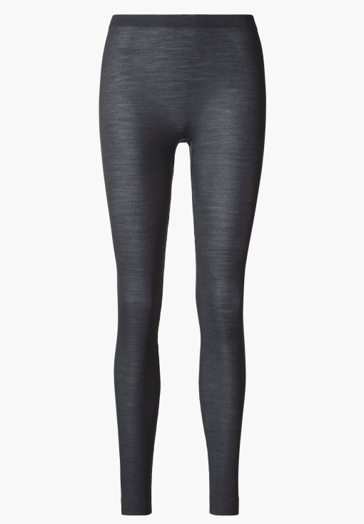 Fine rib fabric with a subtle structure crafted from an elegant wool-silk material. These leggings for women impress with a hidden and elastic waistband. They are made without any side seams to provide a seamless, figure-hugging fit. The cut is slim-fitting and well suitable for layered outfits.